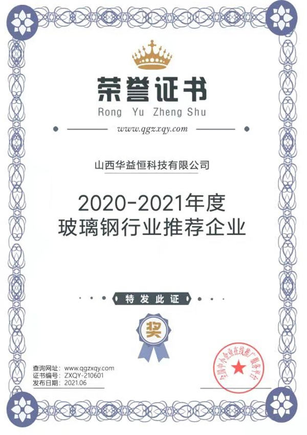 ↑ 華益恒--中國(guó)玻璃鋼行業(yè)AAA級(jí)誠(chéng)信單位證書(shū)